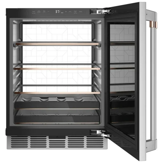 • Refroidisseur à vin encastrable GE, 19 pouces, 30 bouteilles, Acier inoxydable – GWS04HAESS