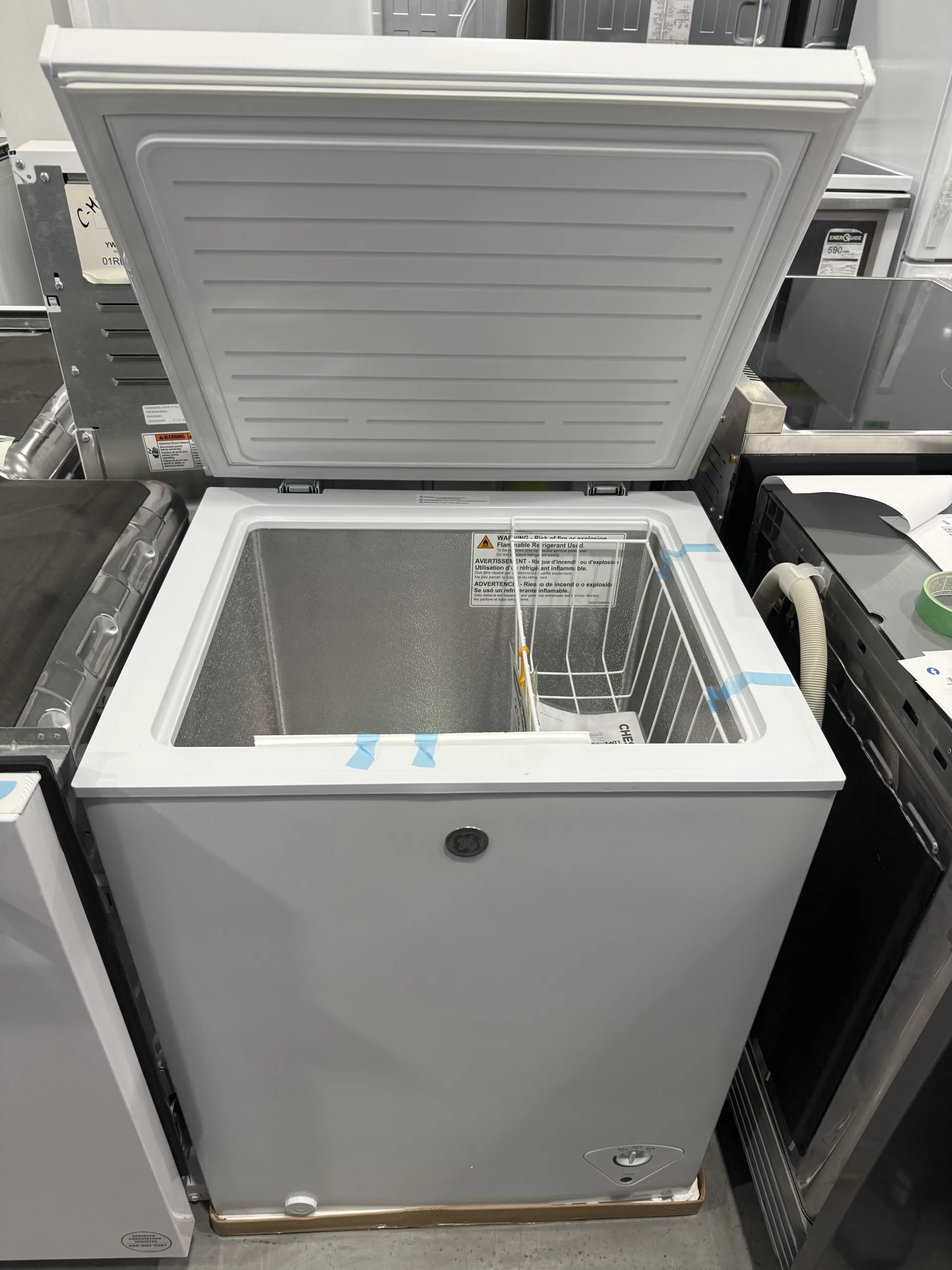 Le congélateur coffre horizontal GE FCM5STBWW est conçu pour offrir une solution de congélation compacte, fiable et efficace. Il convient parfaitement aux foyers recherchant un espace de stockage supplémentaire pour les aliments surgelés tout en conservant un encombrement réduit.