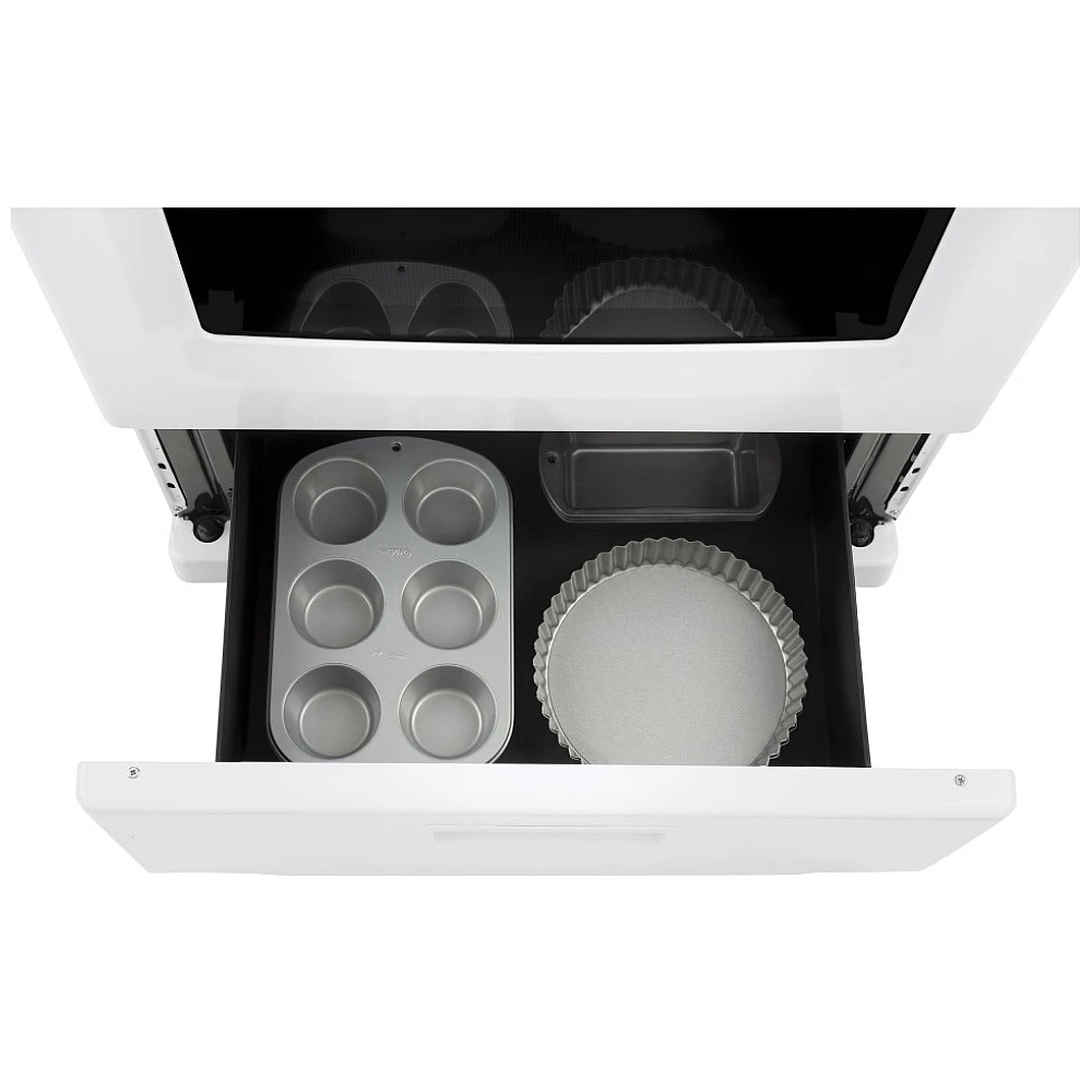 Avec sa largeur de 24 pouces, cette cuisinière est idéale pour les appartements, condos ou cuisines compactes. Le tiroir de rangement intégré permet d’optimiser l’espace, tandis que la finition blanche s’intègre facilement à différents environnements.