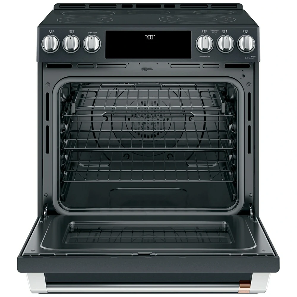 La cuisinière électrique GE Café CCES700P3ND1 propose une cuisson puissante et polyvalente pour la cuisine quotidienne. De plus, sa surface comporte plusieurs éléments qui permettent de préparer différents plats en même temps. Ensuite, la convection véritable assure une répartition uniforme de la chaleur. Enfin, la cuisinière électrique GE Café CCES700P3ND1 combine performance et design moderne.