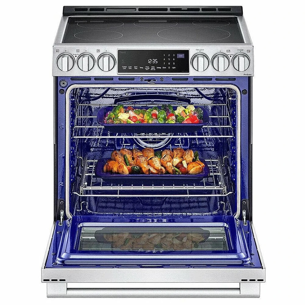La cuisinière électrique LG STUDIO LSES6338F offre une cuisson précise et polyvalente. De plus, sa surface comprend cinq éléments pour gérer plusieurs préparations. Ensuite, la convection véritable améliore la circulation de la chaleur. Enfin, la cuisinière électrique LG STUDIO LSES6338F convient aux cuisines modernes qui recherchent performance et design.