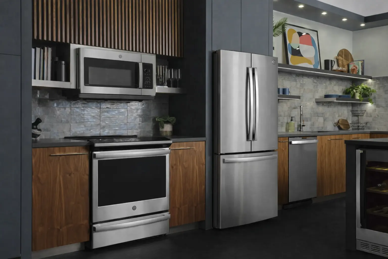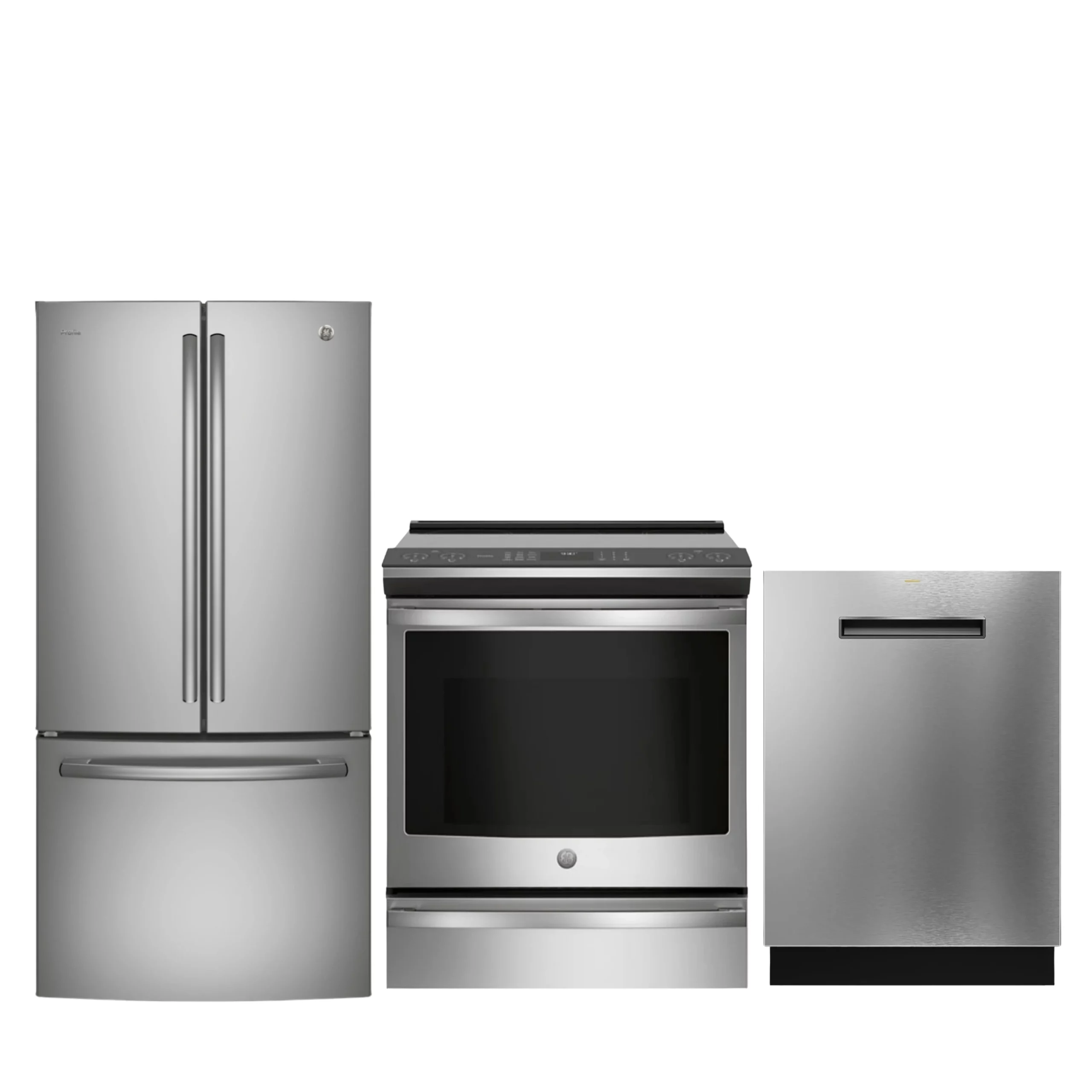 L’ensemble de cuisine GE Profile comprend trois électroménagers conçus pour équiper une cuisine complète et moderne. Il inclut un réfrigérateur à portes françaises, une cuisinière à induction de 30 pouces et un lave-vaisselle encastrable.