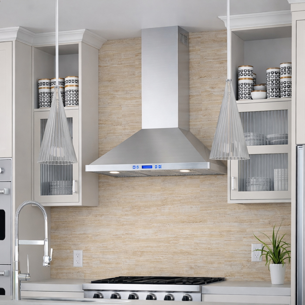 La hotte murale LUX KW36LCD est conçue pour offrir une ventilation efficace et un style moderne à votre cuisine. Fabriquée en acier inoxydable 304 renforcé au nickel, elle combine durabilité et finition haut de gamme. Avec une aspiration pouvant atteindre 870 CFM, elle assure une extraction performante lors de la cuisson.
