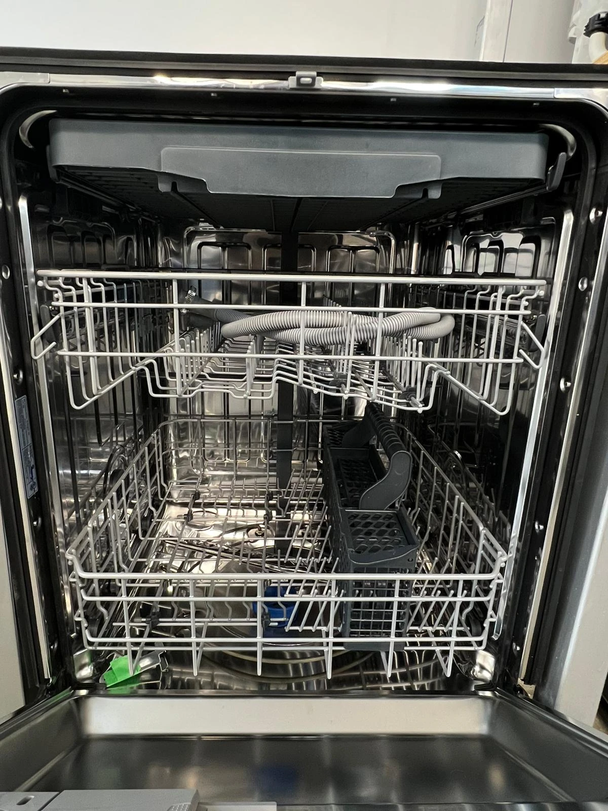 Le panneau entièrement intégré assure une façade uniforme une fois installé. La finition inox complète l’esthétique contemporaine de la cuisine.