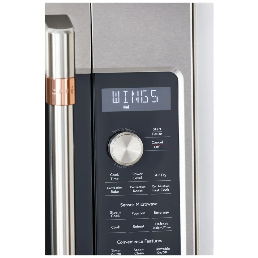 Ce micro-ondes à hotte intégrée Café offre une solution polyvalente et performante pour la cuisine. Avec une largeur de 30 pouces et une capacité de 1,7 pi³, il permet de réchauffer, cuire et ventiler efficacement. Ainsi, il convient parfaitement aux cuisines modernes.