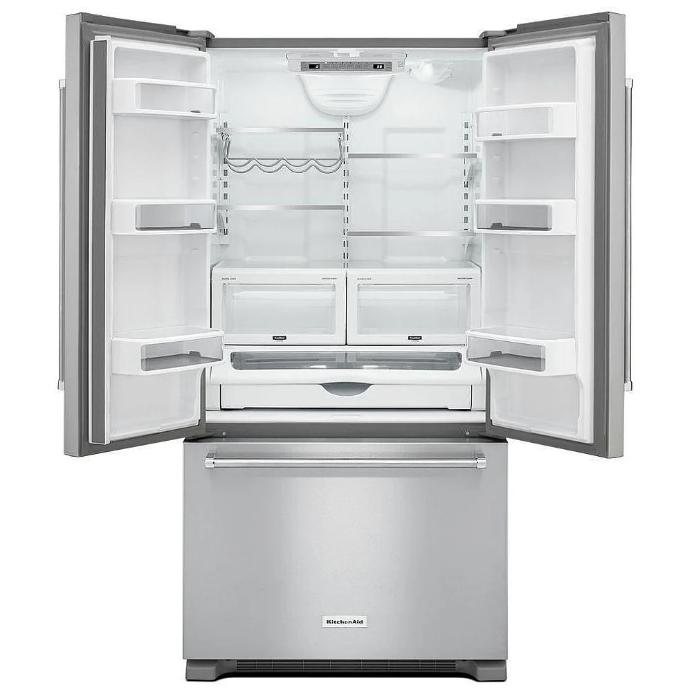 Le réfrigérateur KitchenAid KRFC302ESS est conçu pour offrir un rangement efficace et un accès simple aux aliments frais. Sa configuration à portes françaises facilite l’organisation tout en permettant une bonne visibilité du contenu.