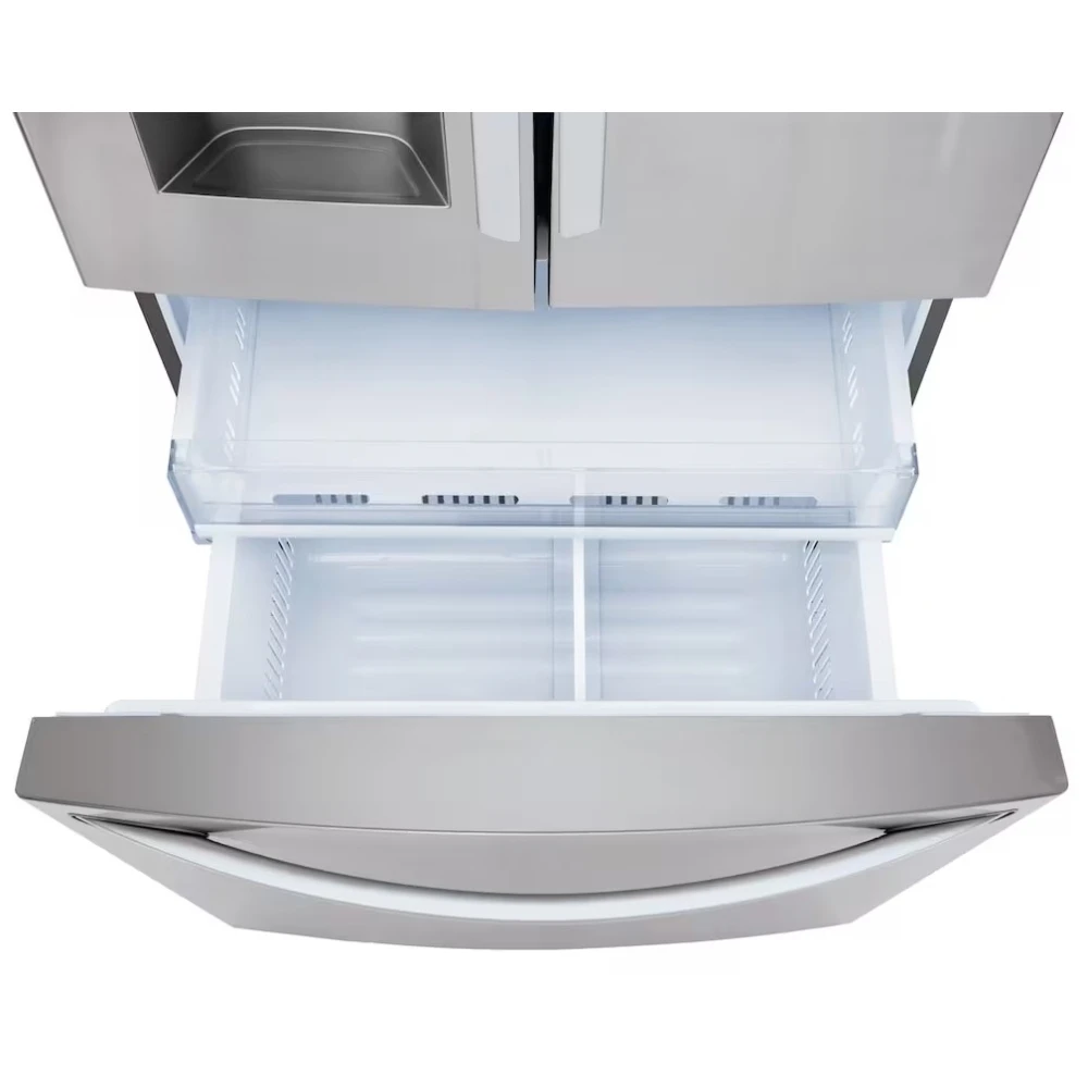 Le réfrigérateur à portes françaises LG LRFS28XBS de 36 pouces offre une très grande capacité de 27,7 pi³, idéale pour les familles nombreuses. Doté d’un distributeur d’eau et de glaçons externe, il combine accessibilité, performance de refroidissement avancée et connectivité moderne dans une finition inox élégante.