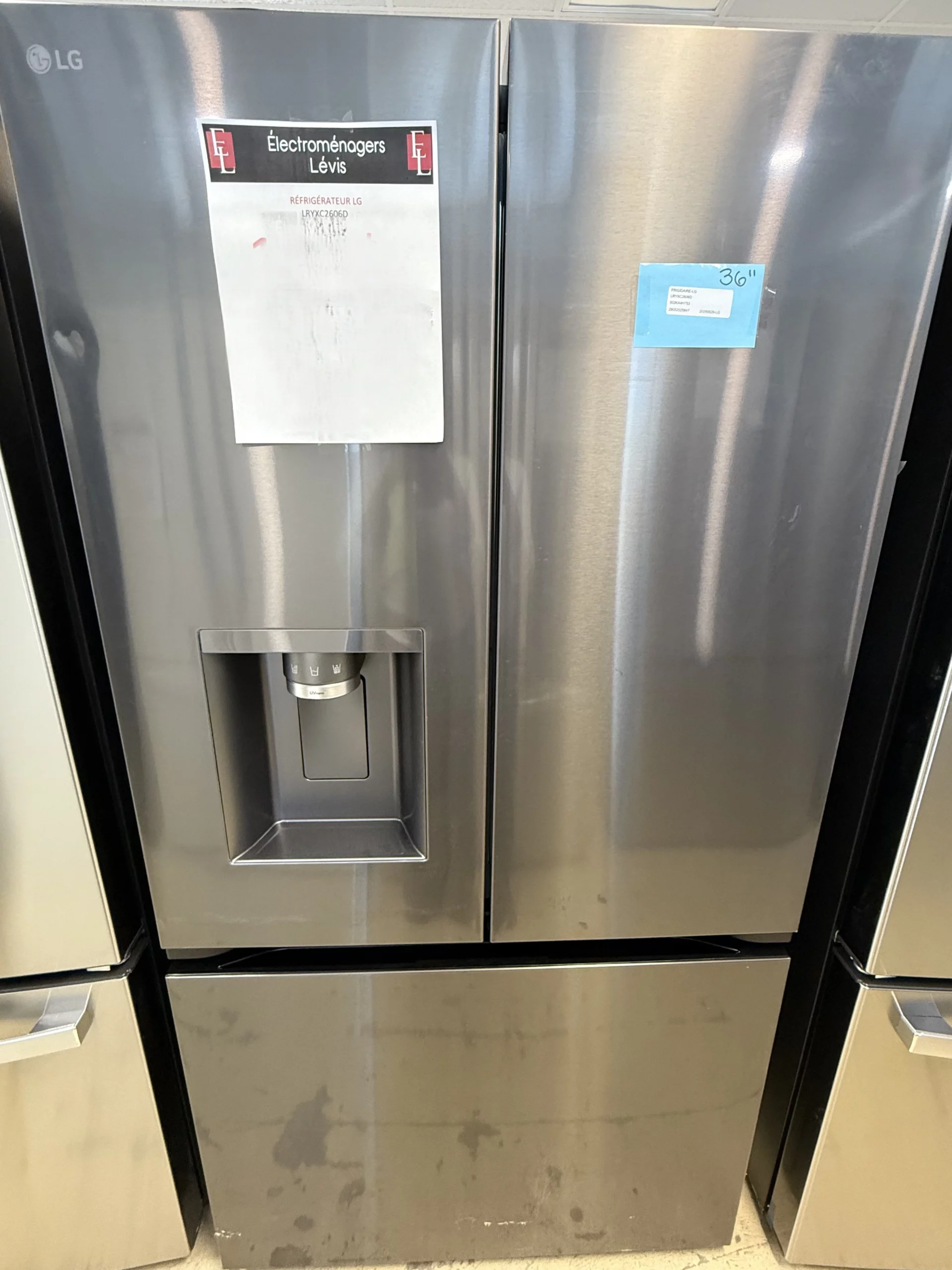 Le réfrigérateur à profondeur de comptoir LG LRYXC2606D 36 pouces est conçu pour offrir une intégration élégante sans compromis sur la capacité. Avec 25.5 pi³, ce réfrigérateur LG 36 pouces combine un format Counter-Depth MAX, un distributeur d’eau extérieur et un système de glaçons à travers la porte, incluant la fonction Craft Ice. Les technologies DoorCooling+, Multi-Air Flow et Cool Guard assurent une fraîcheur uniforme, tandis que la finition en acier inoxydable noir rehausse le style de la cuisine.