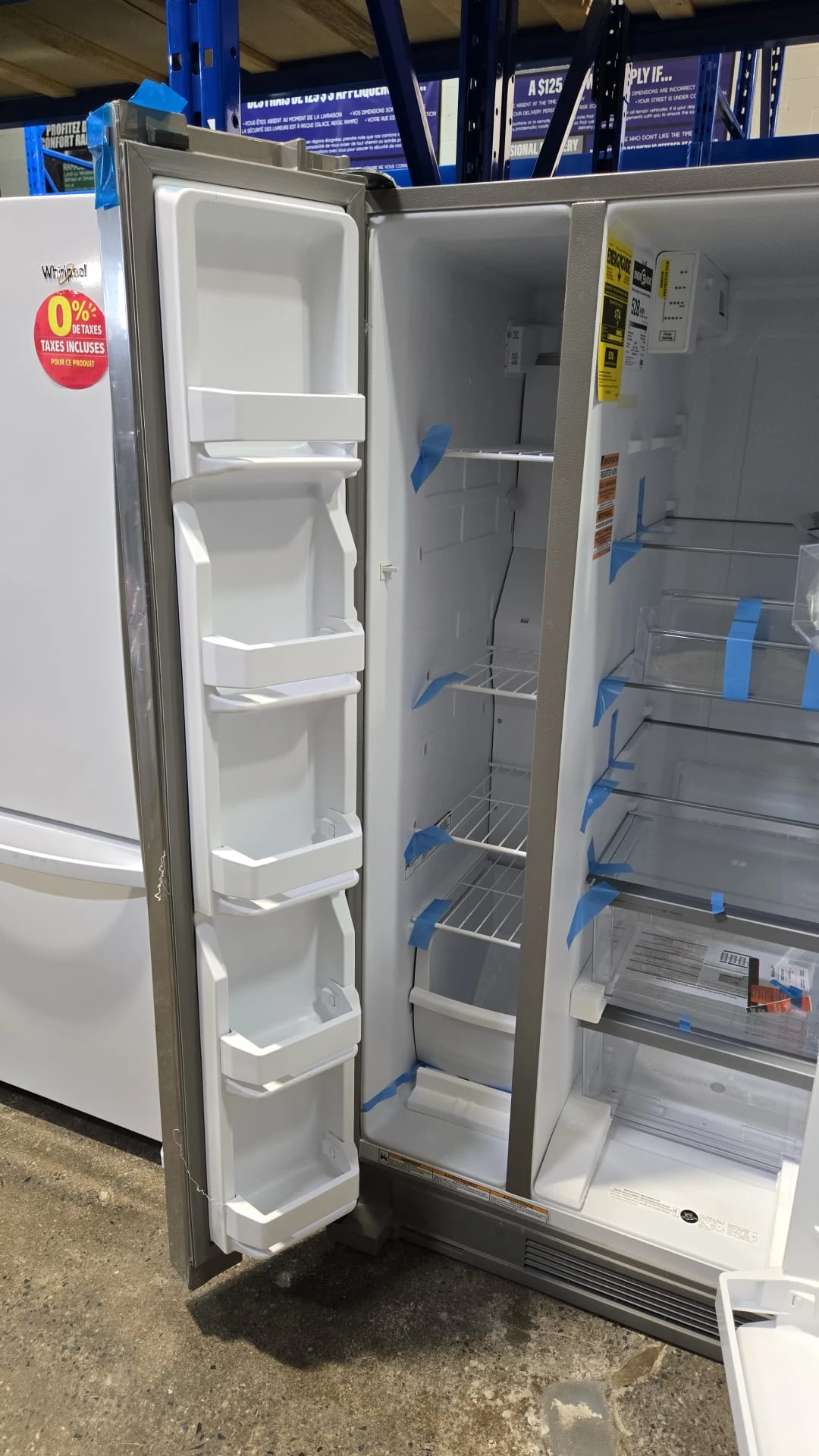 Le réfrigérateur côte à côte Whirlpool WRS312SNHM08 de 33 pouces offre une capacité totale de 21,7 pi³ dans une configuration pratique et bien organisée. Son design en inox s’intègre facilement aux cuisines modernes tandis que son aménagement intérieur permet un accès rapide aux aliments frais et surgelés.