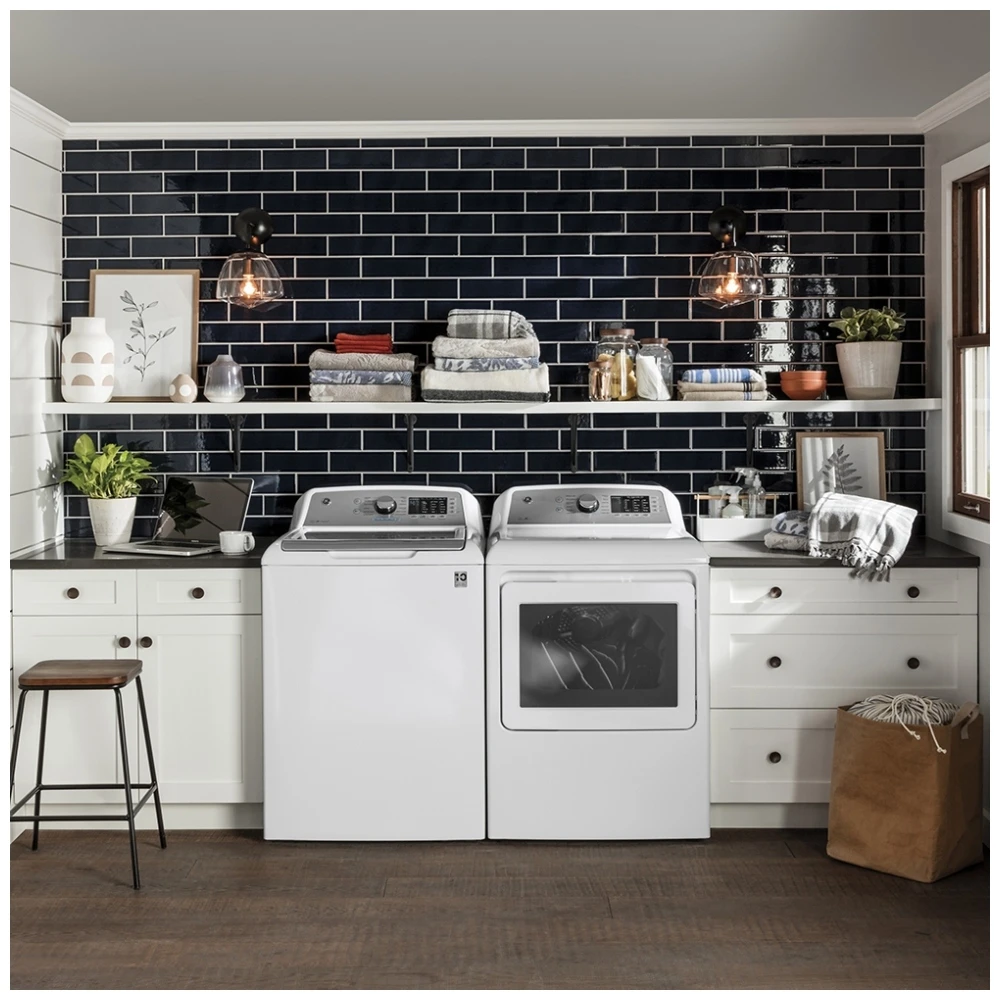 La sécheuse au gaz GE GTD72GBMN0WS offre une grande capacité de 7,4 pi³ dans un format standard de 27 pouces, idéale pour les charges volumineuses.