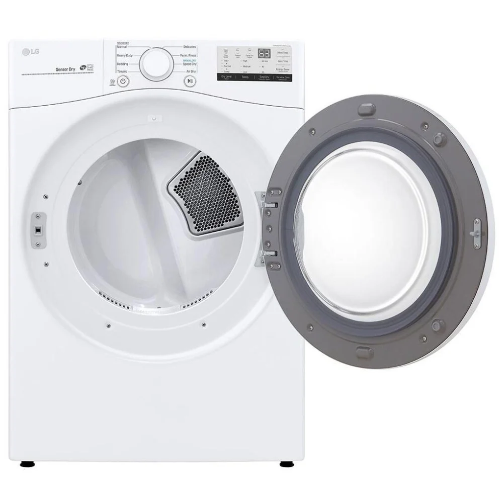 La sécheuse électrique LG DLE3400W offre une capacité généreuse et une installation polyvalente dans un format standard de 27 pouces.