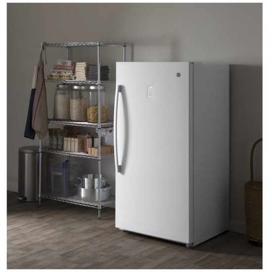 Le congélateur vertical GE FUF17DLRWW 33 pouces offre une grande capacité de rangement pour conserver les aliments surgelés de façon organisée. Avec une capacité de 17,3 pi³, il permet d’entreposer facilement les viandes, légumes et produits congelés pour une utilisation quotidienne.