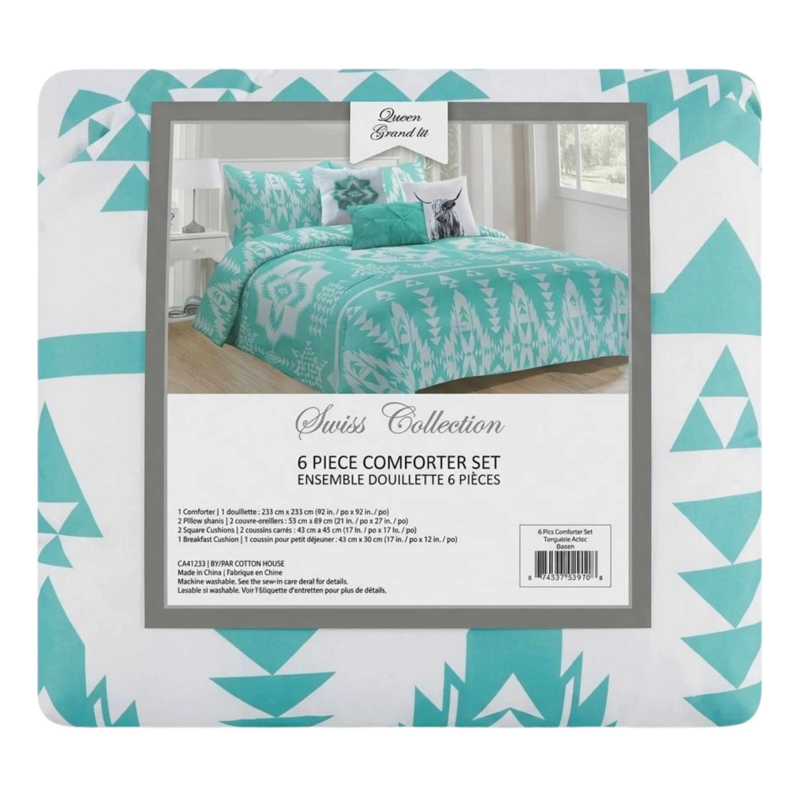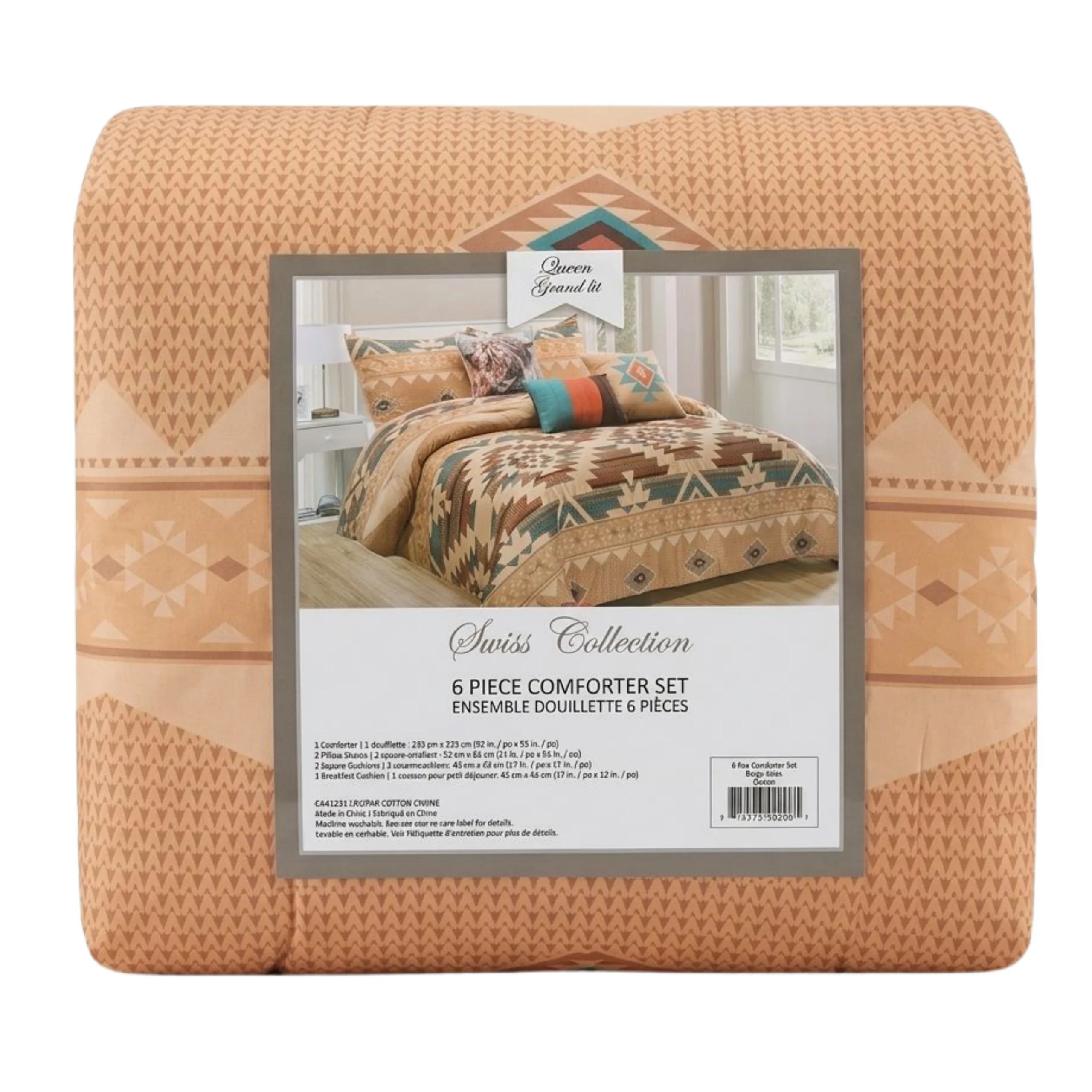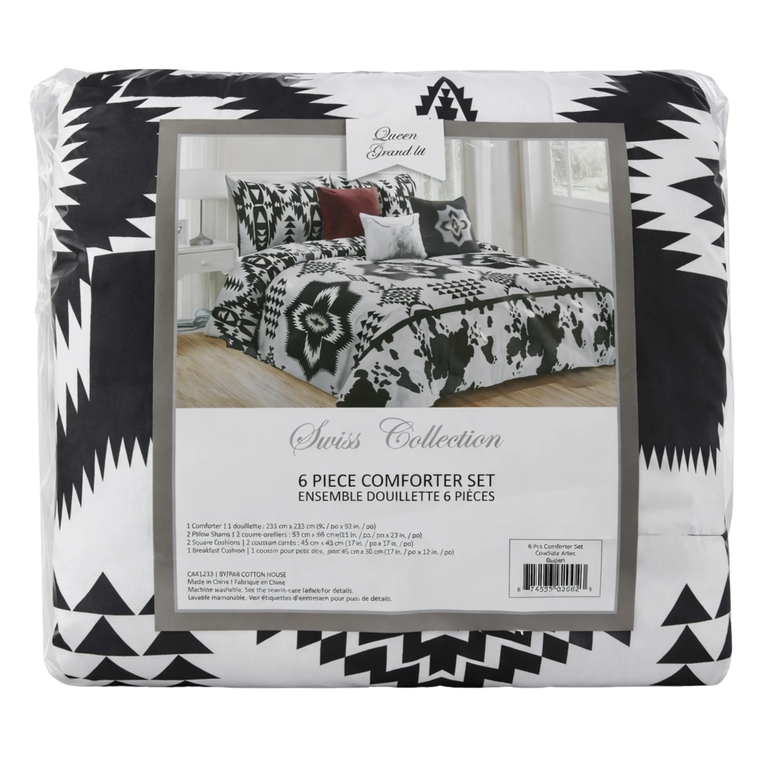 L’ensemble douillette Swiss offre une solution complète pour habiller le lit avec style. Il comprend six pièces assorties pour créer un décor harmonieux. Ainsi, il permet de transformer facilement l’ambiance de la chambre.