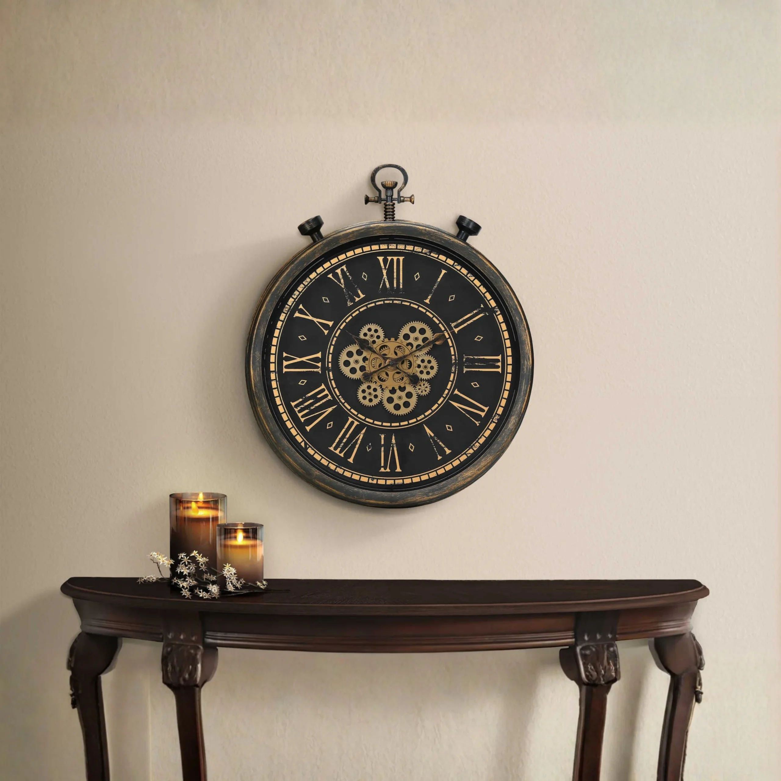 Cette horloge murale de 24 pouces apporte un style industriel et vintage à votre décoration intérieure. Son design rond s’inspire des anciennes montres à gousset, ce qui lui donne un caractère décoratif unique.