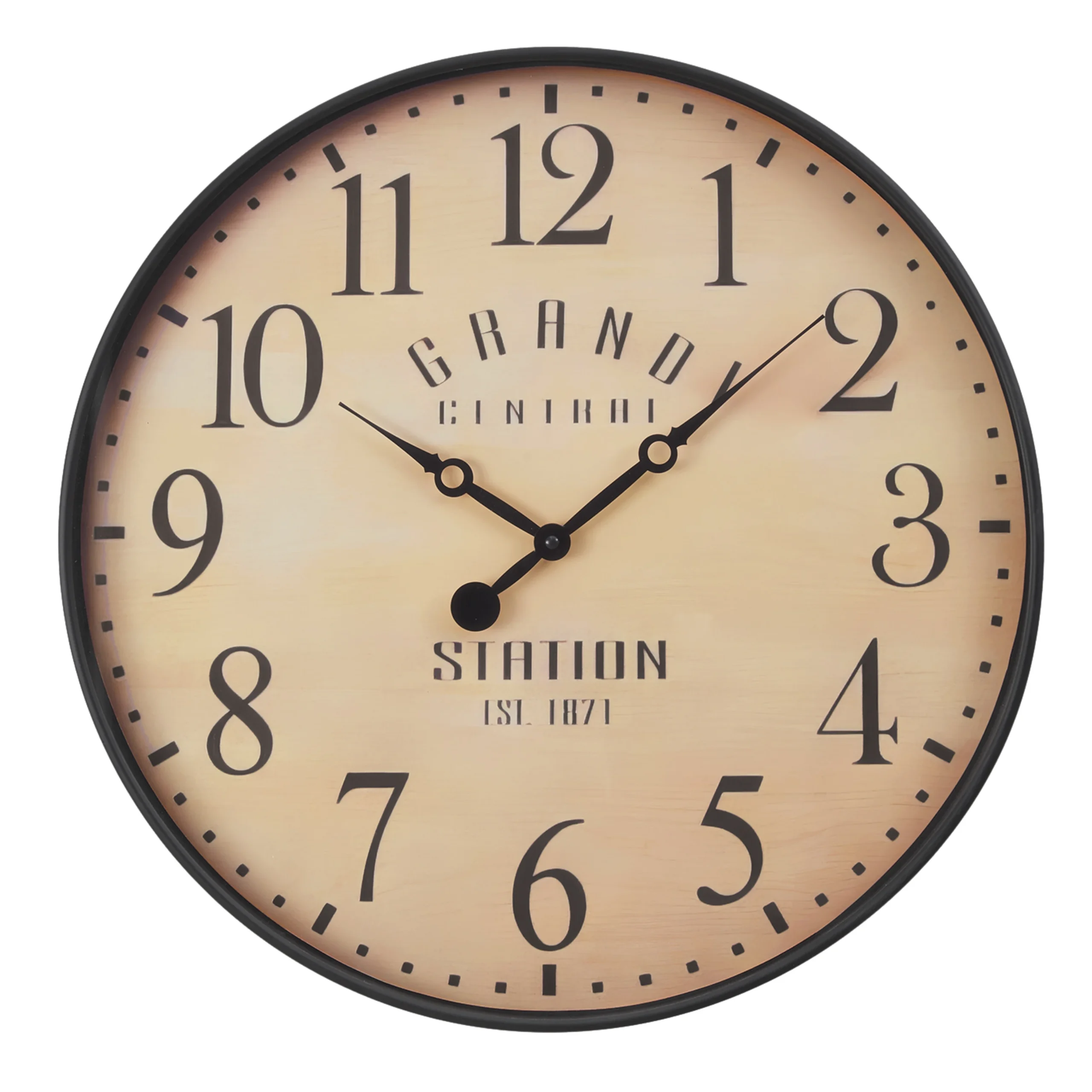 Le cadran présente un fond imprimé nostalgique qui ajoute une touche décorative discrète. Ainsi, l’horloge devient un élément esthétique tout en restant pratique.
