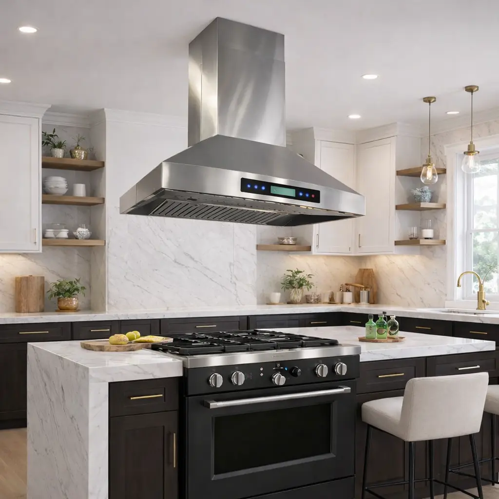 La hotte îlot LUX KI36LCD est conçue pour offrir une ventilation puissante et un style moderne dans une cuisine à aire ouverte. Fabriquée en acier inoxydable #304, elle propose une finition durable et élégante. Avec une puissance allant jusqu’à 870 CFM, elle assure une extraction efficace des odeurs et de la fumée lors de la cuisson.