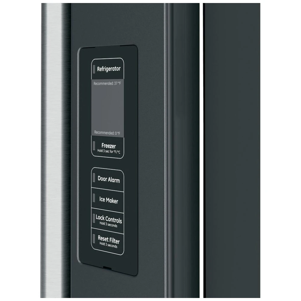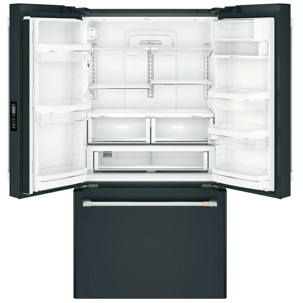 Le réfrigérateur à portes françaises GE Café CWE23SP3MD1 offre une capacité de 23,1 pi³ dans un format profondeur de comptoir de 36 pouces avec distributeur d’eau intérieur et glace située dans le congélateur.