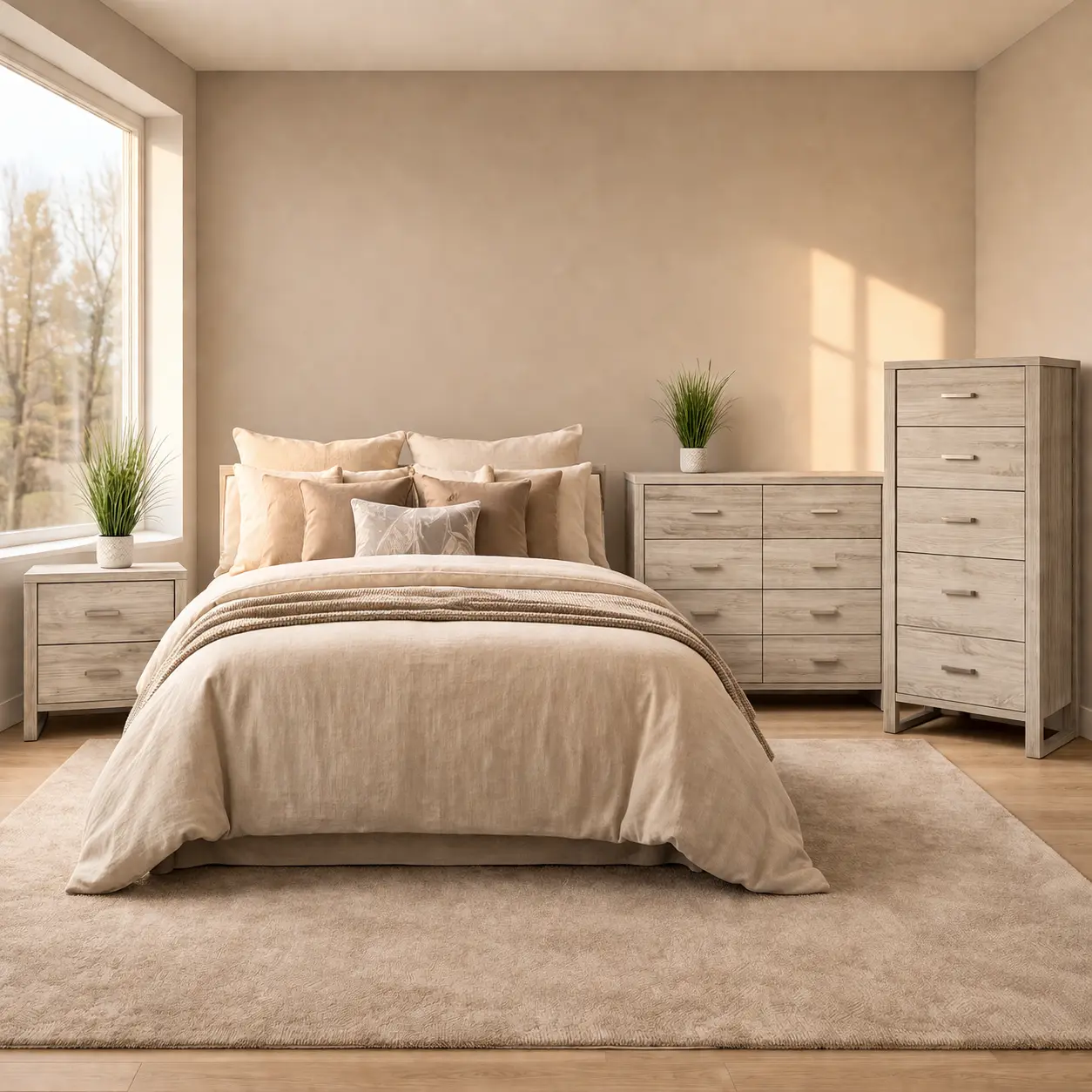 Chaque meuble est conçu pour offrir robustesse, stabilité et grande capacité de rangement, tout en conservant un design épuré qui traverse les tendances. Que votre décor soit moderne, classique ou contemporain, ce mobilier s’intègre naturellement et rehausse l’ambiance de votre chambre.