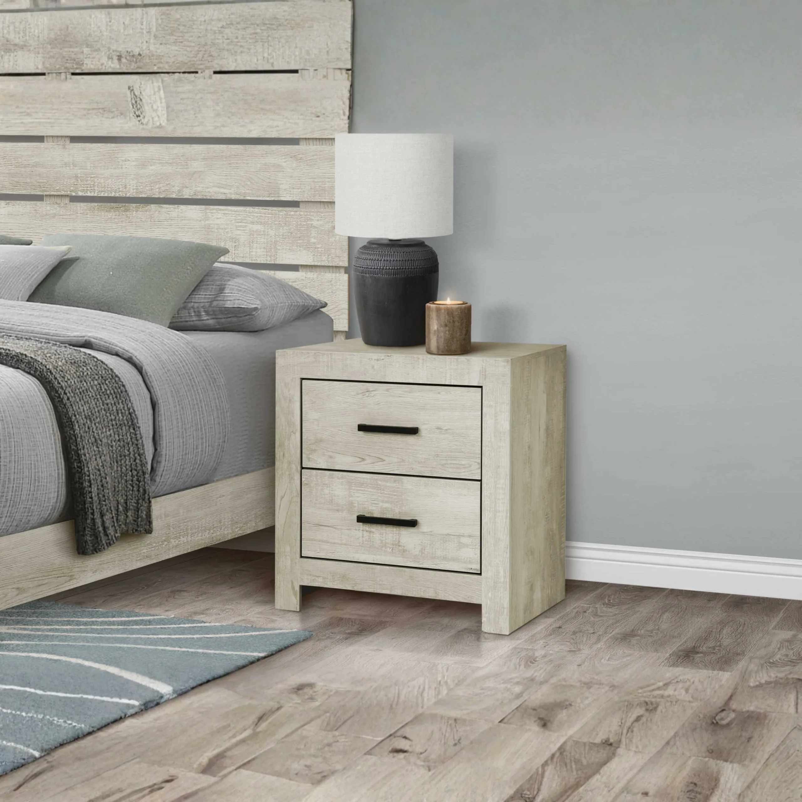 Cette table de chevet Monarch à 2 tiroirs apporte une touche moderne et pratique à votre chambre à coucher. Sa finition en chêne blanchi illumine la pièce et s’agence facilement avec un décor contemporain.